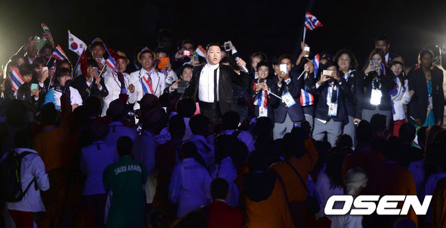 흥겨운 무대 펼치는 싸이,'인천AG 선수단을 하나로~'