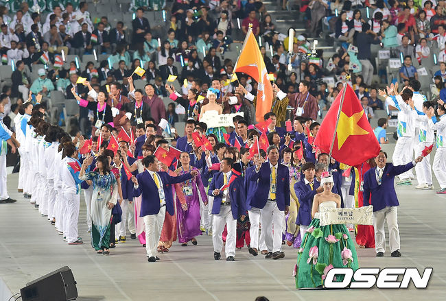 19일 오후 인천 서구 연희동 인천아시아드주경기장에서 열린 제17회 인천 아시안게임 개막식, 베트남 선수단이 입장하고 있다.