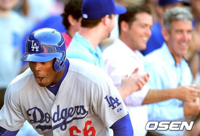 6회말 1사 1,2루에서 다저스 푸이그가 스리런포를 날리고 더그아웃으로 향하며 미소짓고 있다./jpnews@osen.co.kr