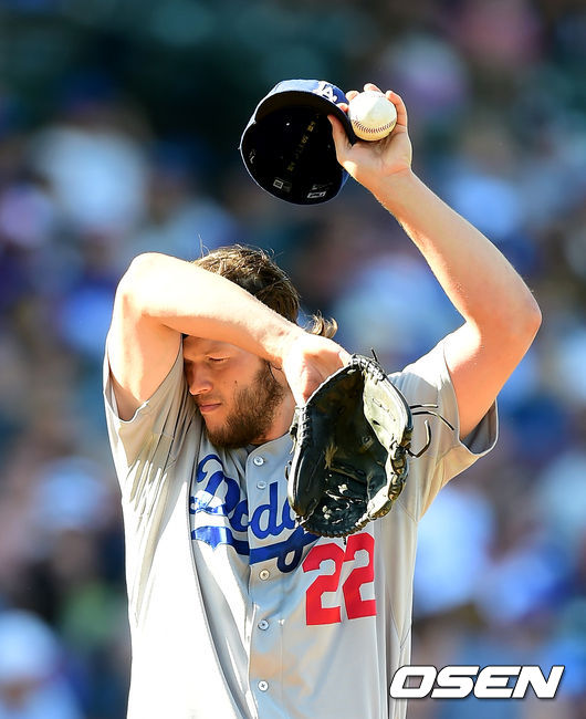 5회말 수비에서 다저스 커쇼가 땀을 닦고 있다./jpnews@osen.co.kr