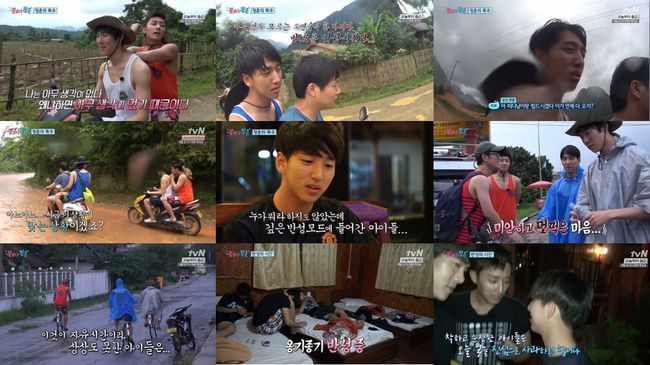 일탈 혹은 도피라, 연예인이든 기자든 아니 어떤 직업을 가진 누구라도 상상만으로 행복한 일이다. 실현이 된다면 더할 나위 없는 기쁨이겠다. 방송을 통해서도 공개됐지만 실제로 바로와 손호준, 유연석 등 세 사람은 당황하기보다 도리어 그 돌발 상황을 즐거워했다. 계획도 못 세웠고 당장 입을 옷 한 장 없고 용돈도 넉넉하지 않았지만 그들에겐 아무 장애가 되지 않았다. 인천공항으로 실려 가는 승합차 안에서도 청춘들의 반응은 흥분과 설렘 그 자체였다. 걱정보다 기대로 충만한 세 사람의 얼굴은 라오스 현지에서도 마찬가지였다. 지칠 법도 한데 한밤중 숙소에서도 팔굽혀 펴기를 멈추지 않는 바로와 유연석의 모습은 이 여행이 피로이기보다 재충전의 시간이라는 증거였다.
