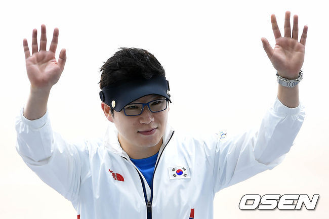 경기에 앞서 한국 진종오가 관중석을 향해 인사를 하고 있다. /sunday@osen.co.kr