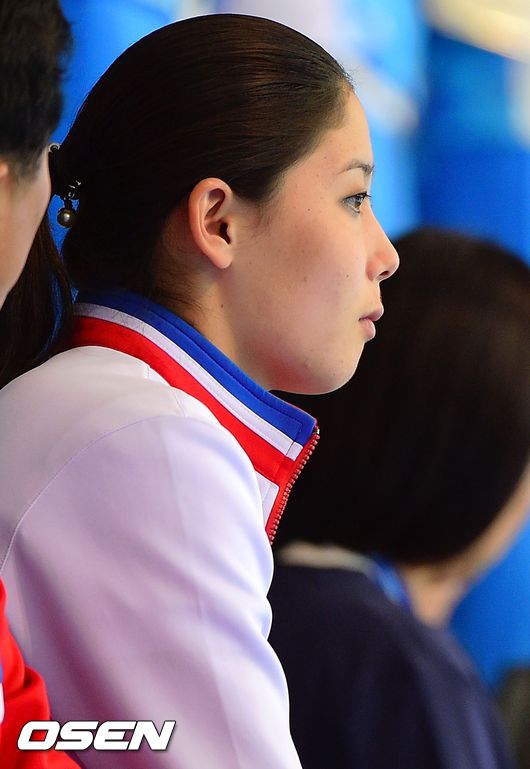 20일 오전 인천 문학동 문학박태환수영장에서 열린 2014 인천아시안게임 싱크로나이즈스위밍 듀엣경기, 북한 응원단이 열띤 응원을 펼치고 있다