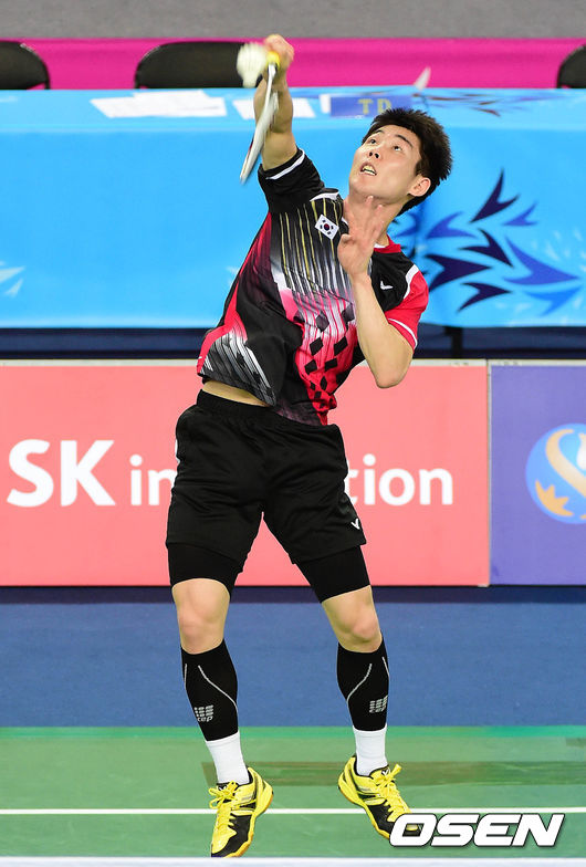 20일 오후 인천 계양체육관에서 열린 제17회 인천 아시안게임 배드민턴 남자 단체전 16강전 경기에서 손완호가 경기를 펼치고 있다.