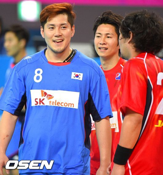 20일 오후 인천 선학핸드볼경기장에서 열린 2014 인천 아시안게임 핸드볼 남자 D조 조별리그 첫 경기 한국과 일본의 대결,전반 박중규가 미소 짓고 있다