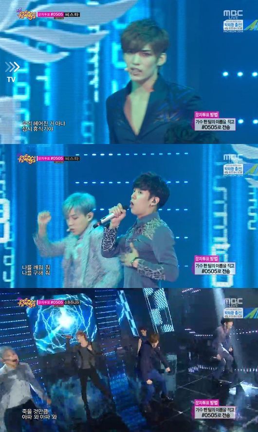 한편 이날 '쇼! 음악중심'에는 태티서, 2PM, 틴탑, 티아라, 왁스, 방탄소년단, 길미, 스피카.S, 박보람, 포텐, 하이포, EXID, 라붐, 밍스, 폰, 터치, 포커즈, 에이코어 등이 출연했다.