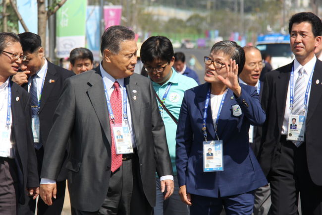 이에리사 선수촌장은 "총리급 이상 인사의 선수촌 방문이 경기력 향상을 위한 일본 선수들의 사기진작에 많은 도움이 될 것"이라며 "우리나라와 같이 이번 대회 종합순위 2위를 목표로 하고 있는 경쟁국의 고위급 인사가 선수촌을 방문한 상황에서 우리 대한민국 대표팀의 사기진작을 위한 정부 고위급 인사들의 발걸음도 필요할 것 같다"고 말했다.