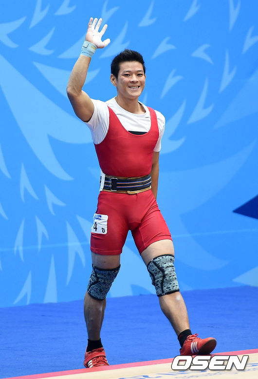 베트남 탁킴투안이 인상 3차시기에서 아시아신기록을 달성하며 환호하고 있다. /sunday@osen.co.kr