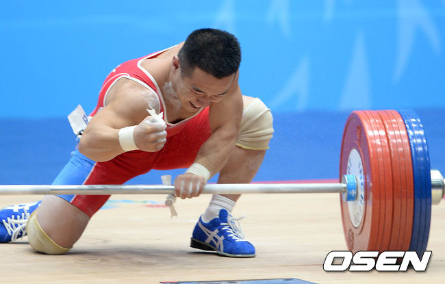 세계신기록을 세운 북한 엄윤철이 환호하고 있다. /sunday@osen.co.kr