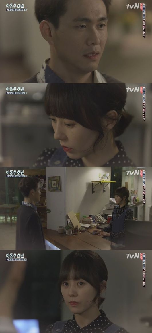 20일 오후 방송된 tvN 금토드라마 '아홉수소년'(극본 박유미, 연출 유학찬)에서 구광수(오정세 분)가 주다인(유다인 분)에게 머뭇거리던 고백을 마침내 감행했다.