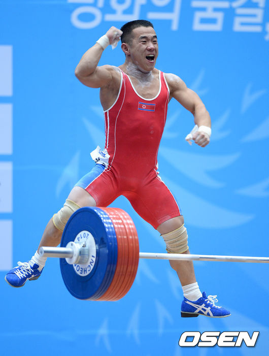 대회신기록을 세운 북한 엄윤철이 환호하고 있다. /sunday@osen.co.kr