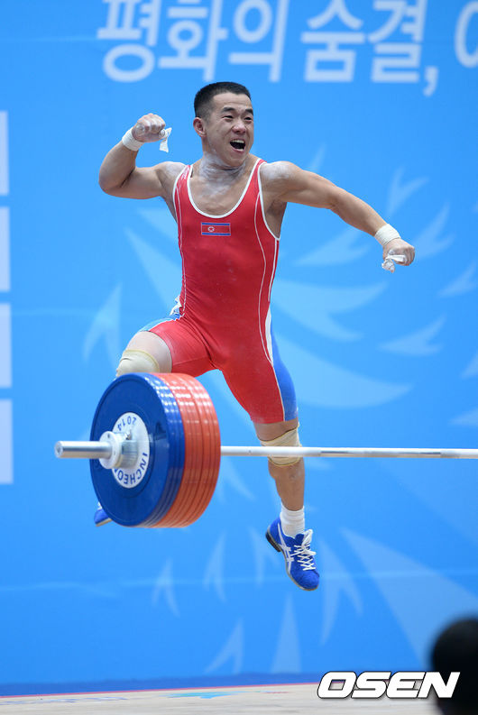대회신기록을 세운 북한 엄윤철이 환호하고 있다. /sunday@osen.co.kr