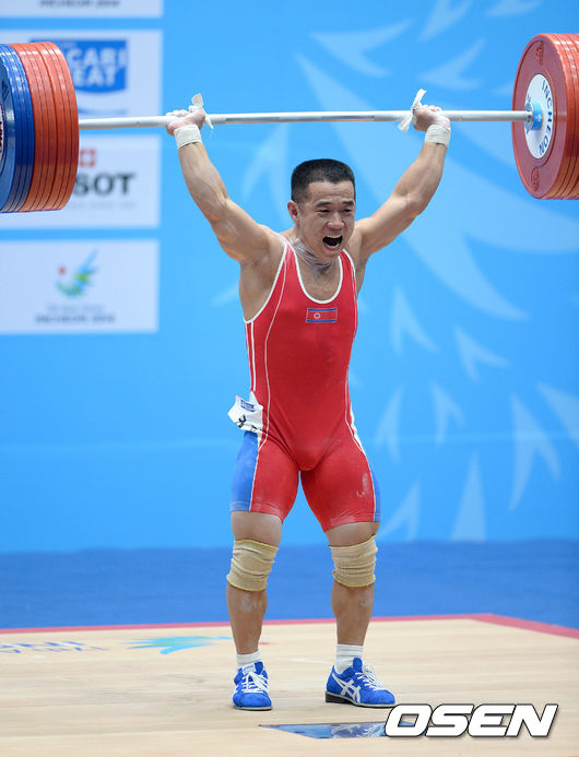 북한 엄윤철이 세계신기록을 달성하고 있다. /sunday@osen.co.kr