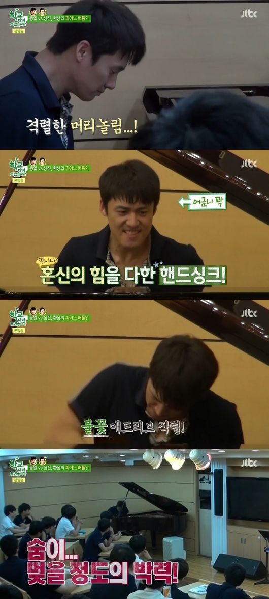 이날 음악시간에 성동일이 먼저 나서 음악에 맞춰 피아노 연주를 하는 시늉을 했고 연기자답게 다양한 표정 연기와 격한 몸짓으로 눈길을 끌었다.