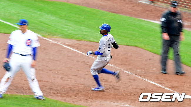 21일(이하 한국시간) 미국 일리노이주 시카고 리글리 필드에서 열린 '2014 메이저리그' LA 다저스와 시카고 컵스의 경기, 6회초 1사에서 다저스 고든이 좌전안타를 날리고 1루에 출루하고 있다.