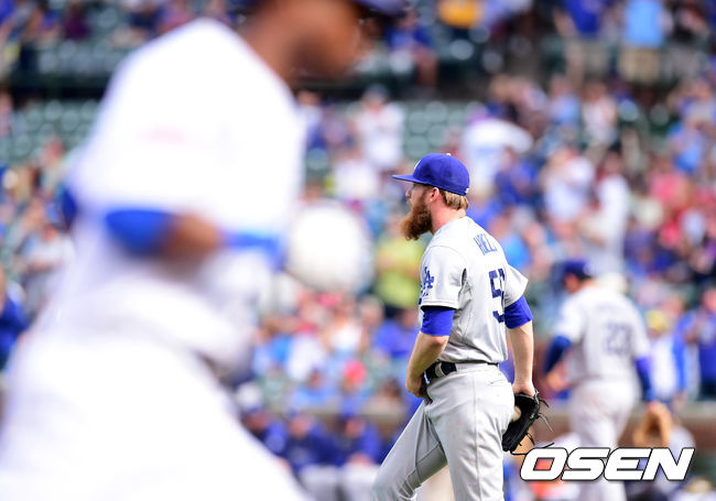 7회말 2사 1,3루에서 다저스 하웰이 컵스 알칸타라에 좌월 스리런포를 허용하고 아쉬워하고 있다./jpnews@osen.co.kr