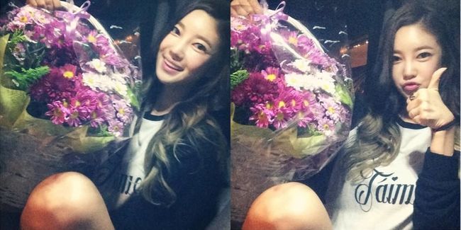 NS윤지는 지난 20일 오후 자신의 트위터를 통해 “내사랑 윤돌 윤순이들. 고마워요! 오늘도 신나게 무대하고 올게요! ‘설렘주의’ 많이들 듣고 있죠? 크크”라는 글과 함께 사진 두 장을 게재했다.