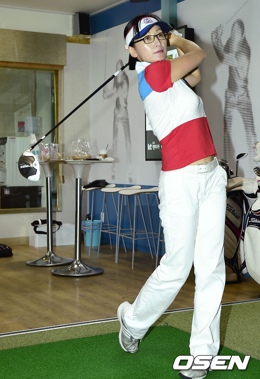 오미영(45, KLPGA)이 드라이버 티샷을 하고 있다.