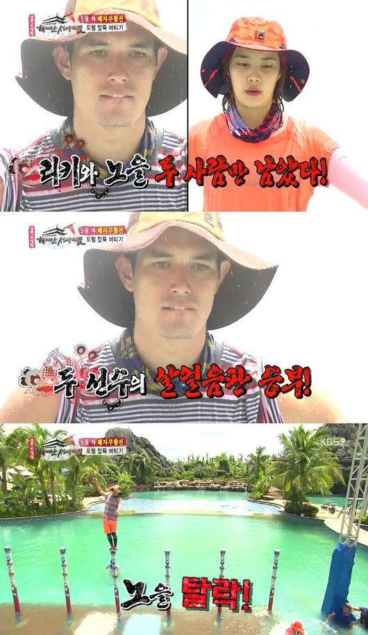 21일 오전 방송된 KBS 2TV '출발드림팀2'의 ‘중국 하이난 서바이벌 제5탄’의 ‘패자부활전’에서 그는 '토템 말뚝 버티기'를 통해 승자를 가리는 과정에서 노을을 꺾고 승리했다.