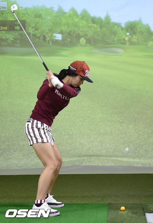 최예지(19, 골프존 아카데미/파리게이츠)가 티샷을 하고 있다.