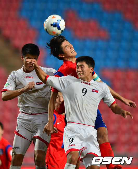 한국 이상민이 북한 선수들과 공중볼 다툼을 하고 있다./ rumi@osen.co.kr