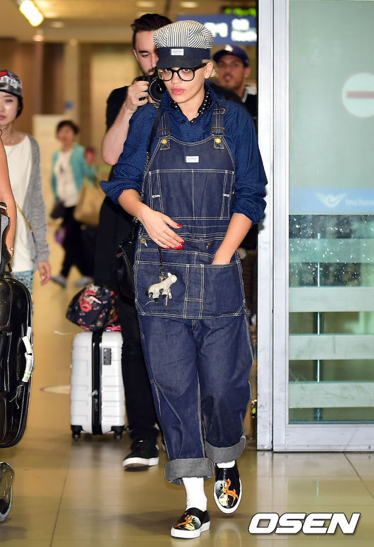 멜빵 바지의 수수한 모습으로 입국하는 리타 오라