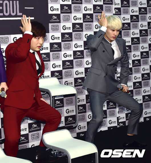 콘서트에 앞서 진행된 기자회견에서 슈퍼주니어 신동, 은혁이 포토타임을 갖고 있다.