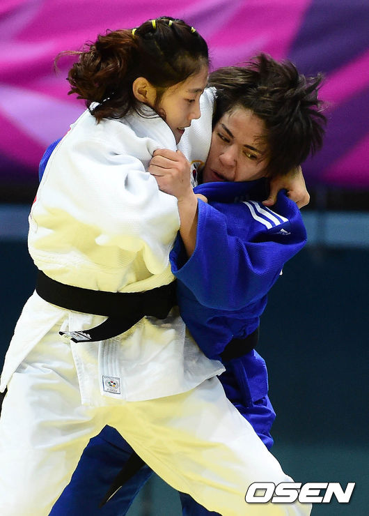 21일 오전 인천 도원체육관에서 열린 제17회 인천 아시안게임 유도 여자 16강에서 김잔디가 경기를 펼치고 있다.