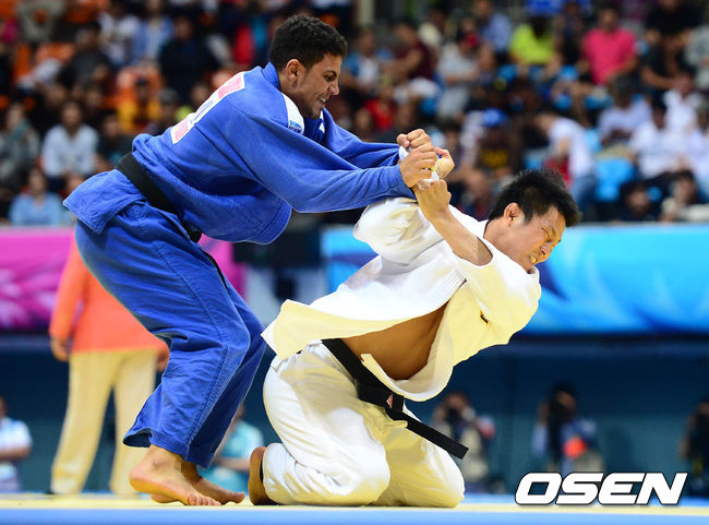 21일 오전 인천 도원체육관에서 열린 제17회 인천 아시안게임 유도 남자 81kg 16강전에서 김재범이 경기를 펼치고 있다.