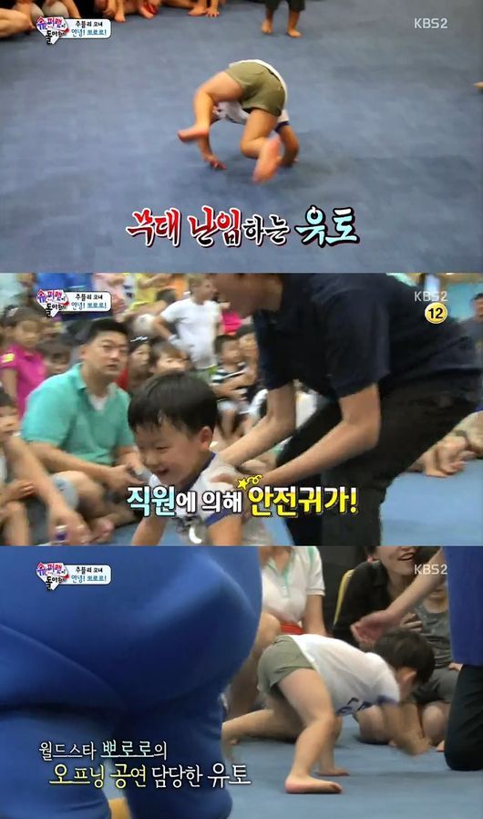 이날 방송에서 유토는 뽀로로의 공연이 펼쳐지던 중 "주세요"라고 열심히 외친 덕분에 뽀로로에게 풍선 선물을 받았다. 풍선을 받고 기뻐하던 유토는 곧 풍선을 동생에게 건네줘 훈훈한 형의 모습을 보였다.