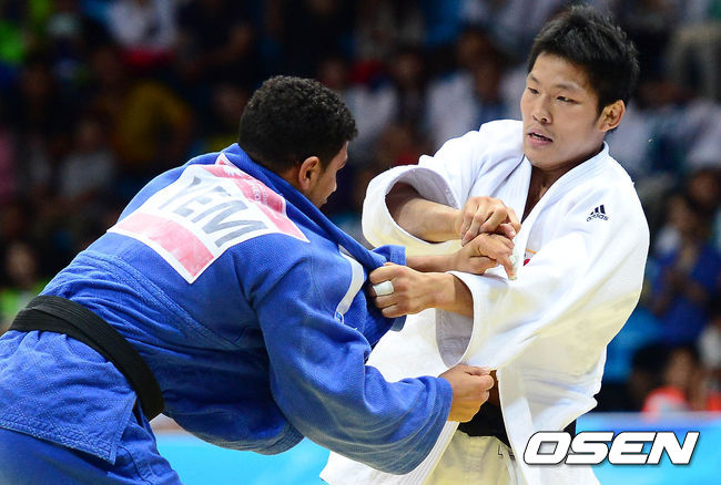 21일 오전 인천 도원체육관에서 열린 제17회 인천 아시안게임 유도 남자 81kg 16강전에서 김재범이 경기를 펼치고 있다.