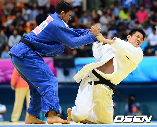 21일 오전 인천 도원체육관에서 열린 제17회 인천 아시안게임 유도 남자 81kg 16강전에서 김재범이 경기를 펼치고 있다.
