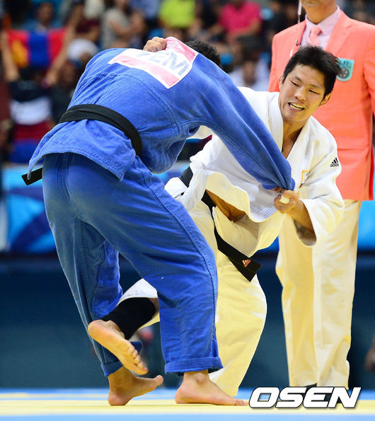 21일 오전 인천 도원체육관에서 열린 제17회 인천 아시안게임 유도 남자 81kg 16강전에서 김재범이 경기를 펼치고 있다.