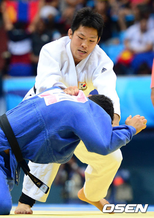 21일 오전 인천 도원체육관에서 열린 제17회 인천 아시안게임 유도 남자 81kg 16강전에서 김재범이 경기를 펼치고 있다.