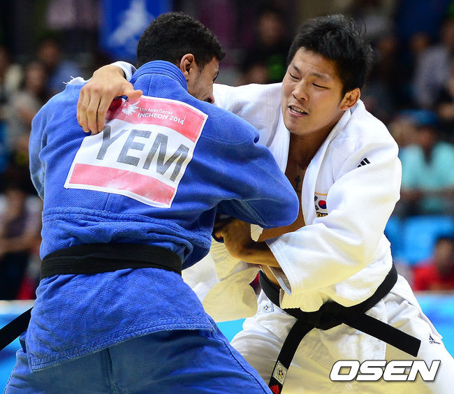 21일 오전 인천 도원체육관에서 열린 제17회 인천 아시안게임 유도 남자 81kg 16강전에서 김재범이 경기를 펼치고 있다.