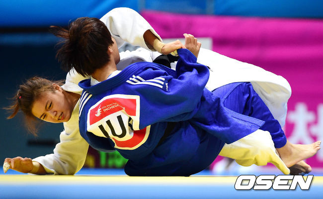 21일 오전 인천 도원체육관에서 열린 제17회 인천 아시안게임 유도 여자 63kg 예선에서 정다운이 경기를 펼치고 있다.