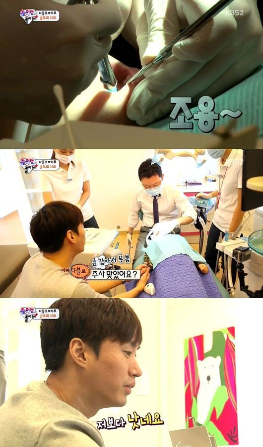 21일 오후 방송된 KBS 2TV 예능프로그램 '해피선데이-슈퍼맨이 돌아왔다'에서는 충치 신경치료를 위해 치과를 찾은 타블로 모녀의 모습이 그려졌다.