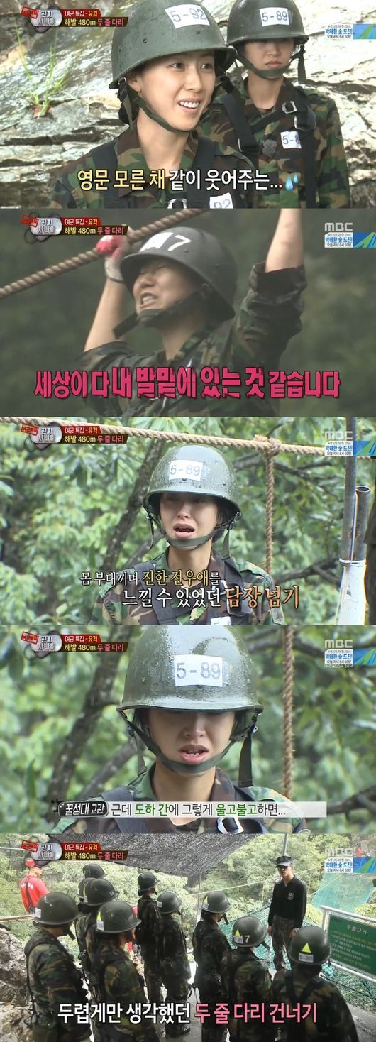 ‘진짜 사나이’ 여군은 강했다. 고소공포증에 눈물을 보였지만 그래도 전원 두 줄 다리 도하에 성공하며 감동을 선사했다.