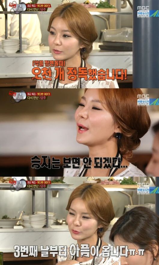그는 “첫째날부터 빵빵 터졌는데 세번째날부터 아픔이 온다. 아팠다가 다시 일어났다”라고 덧붙였다. 맹승지는 이 프로그램 출연 후 일부 네티즌으로부터 태도 지적을 받았다.