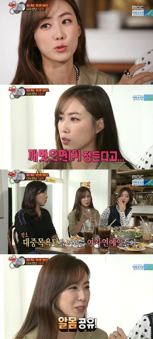 이어 그는 “우리가 알몸을 공유했다”라고 함께 샤워를 하며 친해졌다고 털어놨다. 맹승지는 “데뷔 후 처음으로 연예인들과 함께 샤워를 했다. 처음에는 부끄러웠는데 나중에는 바쁘니깐 그런 게 없더라”라고 회상했다.