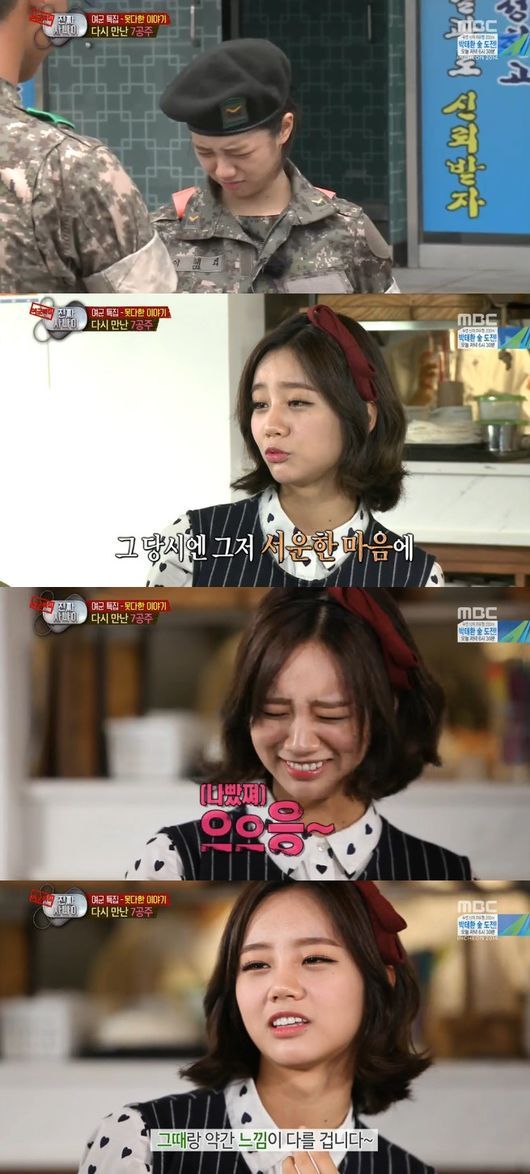 혜리는 훈련소를 떠나며 교관에게 “아잉”이라고 말하며 애교를 표현했다. 이에 그는 “그때는 서운해서 나온 거다”라고 설명한 후 다시 한번 ‘아잉’ 애교를 했다.