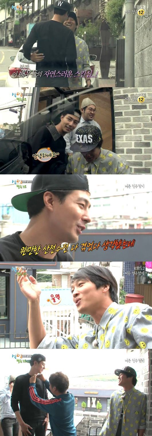 ‘1박 2일’ 조인성과 김기방이 차태현의 제안을 거절하지 못하고 쩔친여행에 합류했다.