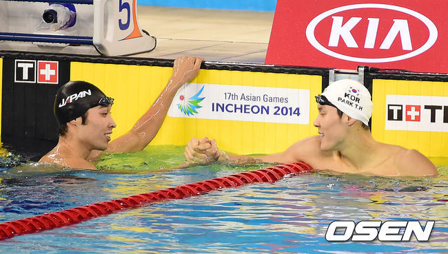 박태환은 21일 인천 문학박태환수영장에서 열린 2014 인천 아시안게임 남자 자유형 200m 결선에서 3위에 올랐다. 박태환은 1분 45초 85의 기록으로 동메달을 따냈다. 1위는 하기노 고스케가 1분 45초 23의 기록으로 금메달을 획득했다.