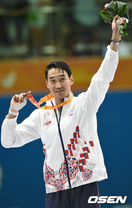 은메달을 차지한 김정환이 포즈를 취하고 있다. /sunday@osen.co.kr