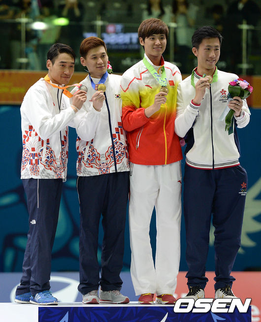 세계랭킹 1위 구본길은 21일 고양실내체육관서 열린 2014 인천아시안게임 펜싱 남자 사브르 결승전서 세계랭킹 2위 김정환을 15-13으로 힘겹게 물리쳤다.