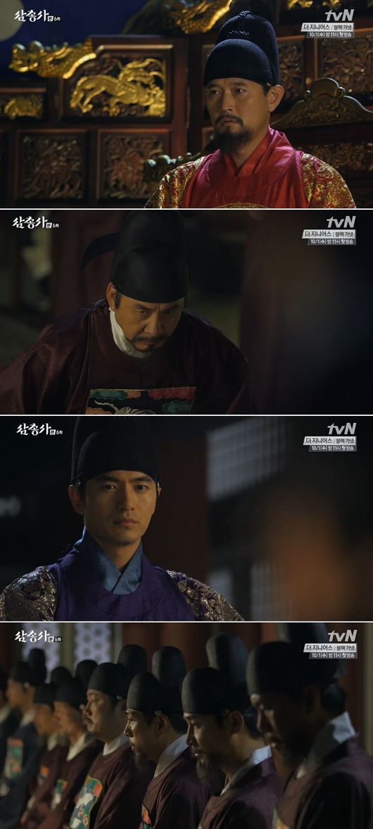 21일 오후 방송된 tvN 일요드라마 ‘삼총사’에서는 인조(김명수 분)에게 조정 내 배신자가 있다고 전하는 김자점(박영규 분)의 모습이 그려졌다.