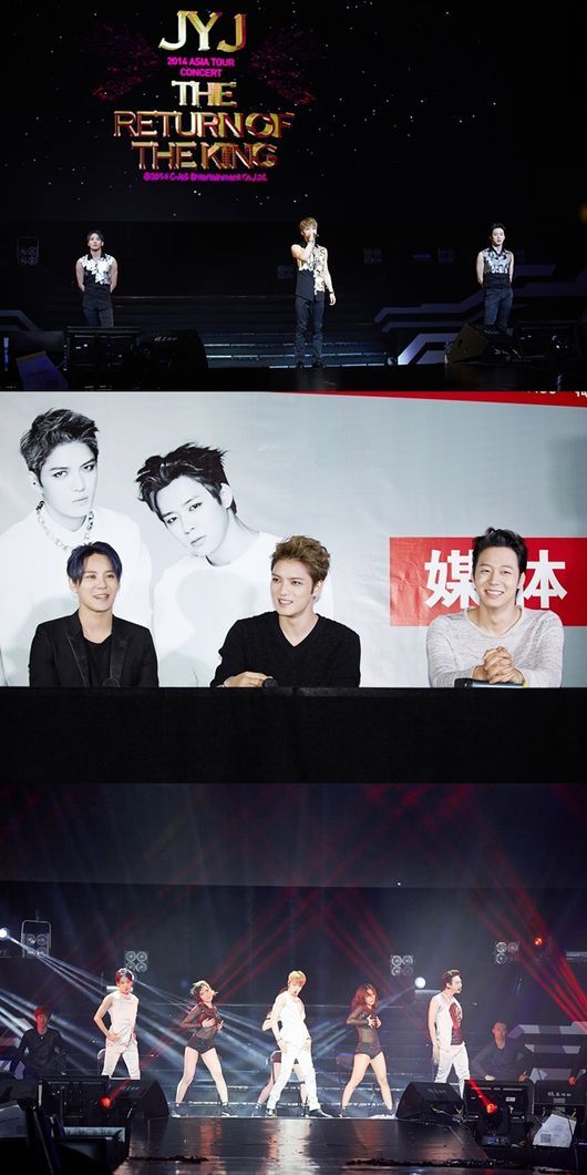 JYJ는 20일(현지시간) 오후 중국 상하이 메르세데스 벤츠 아레나(Mercedes-Benz Arena)에서 열린 2014 JYJ 아시아 투어 인 상하이 '더 리턴 오브 더 킹(THE RETURN OF THE KING)' 공연을 갖고 1만 1000여명의 관객을 열광시킨 가운데, 공연에 앞서 가진 기자회견에서 투어 중 가장 감동적인 순간에 대한 이야기를 들려줬다.