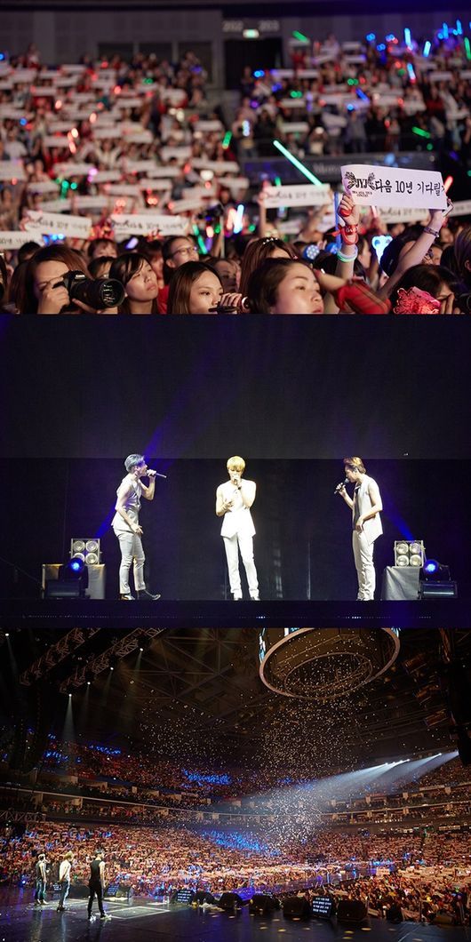 두근두근. 드디어 데뷔 10년을 맞아 중국 팬들을 위해 준비한 곡인 '십년(十年)'이 흘러나왔다. 간주가 나오자마자 팬들은 환호, 'JYJ 다음 10년 기다릴게'라는 문구가 적힌 슬로건을 들고 처음부터 끝까지 JYJ와 함께 노래를 불렀다. 김준수는 "벌써 10년이란 시간이 흘렀지만 앞으로의 무대가 더욱 기대된다"란 말을 전하기도.
