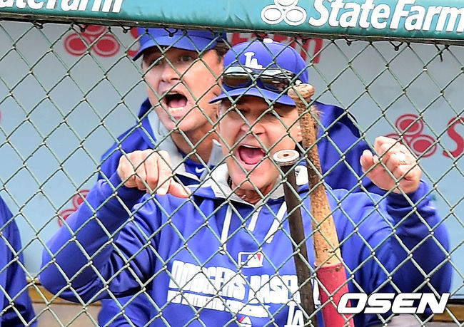 9회말 2사 2,3루에서 다저스 잰슨이 컵스 발부에나를 삼진으로 처리하자 매팅리 감독이 기뻐하고 있다. /jpnews@osen.co.kr