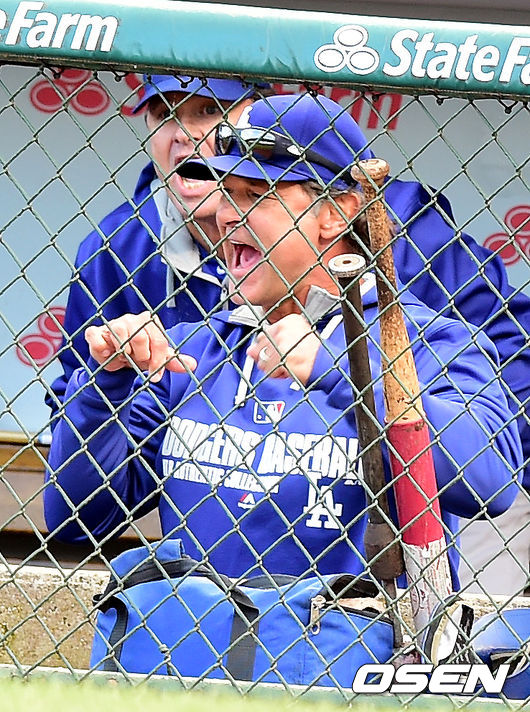 9회말 2사 2,3루에서 다저스 잰슨이 컵스 발부에나를 삼진으로 처리하자 매팅리 감독이 기뻐하고 있다. /jpnews@osen.co.kr